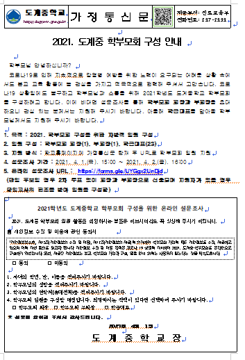 2021. 도계중 학부모회 구성 안내