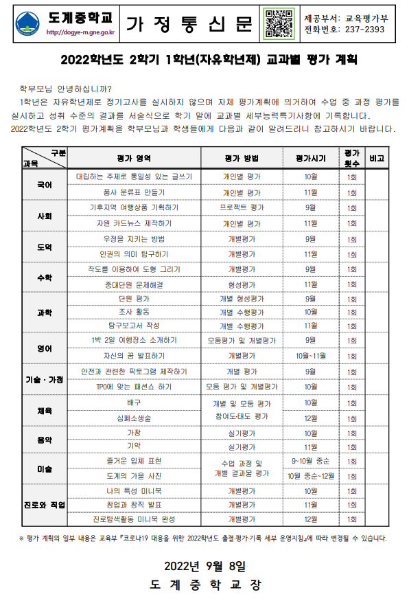 2022학년도 2학기 1학년 (자유학년제) 평가계획 가정통신문.pdf