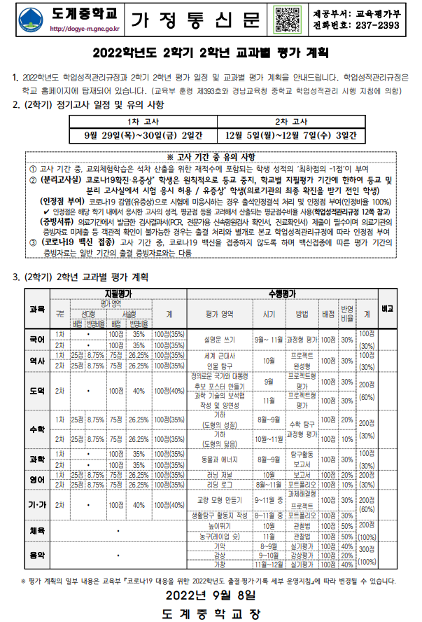 2022학년도 2학기 2학년 교과별 평가계획 가정통신문.pdf