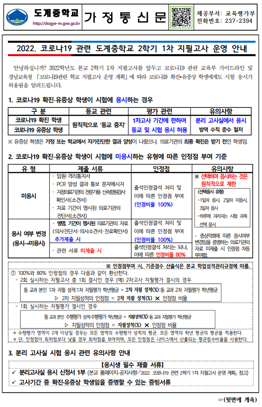 2022. 코로나19 관련 2학기 1차 지필고사 안내를 위한 가정통신문.pdf