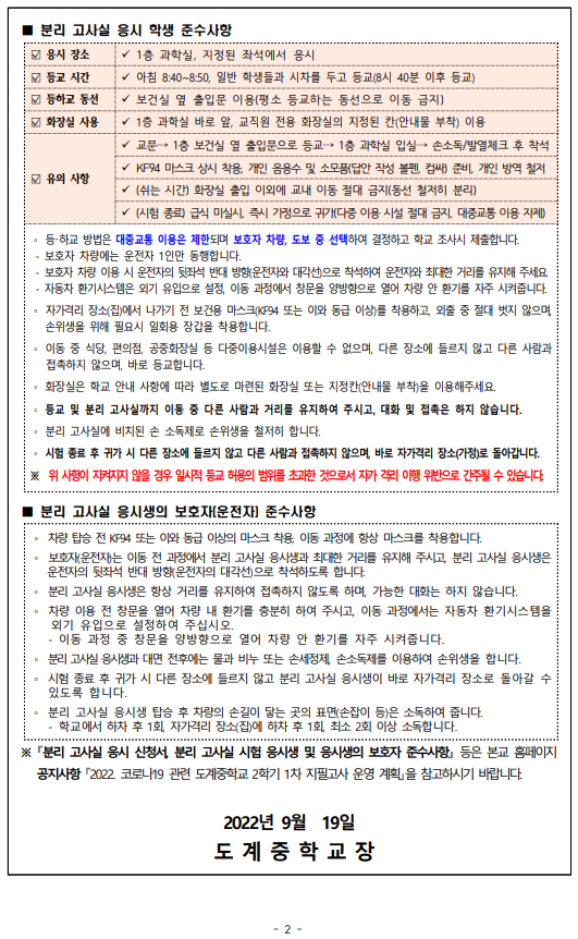 2022.코로나19 관련 (2학기 1차)지필고사 안내