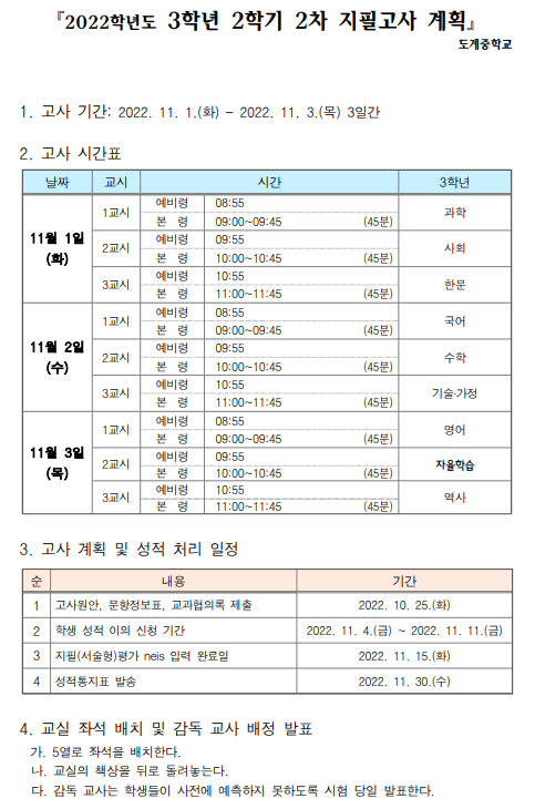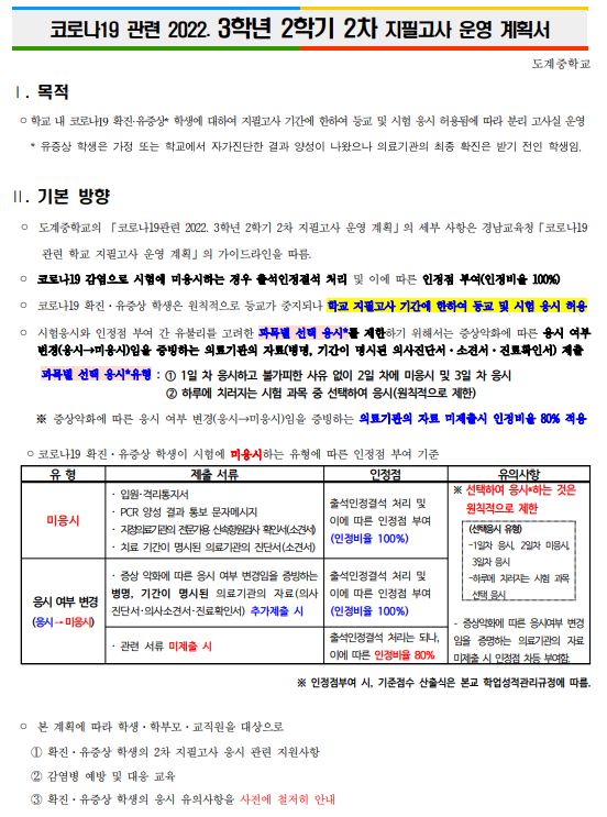 2022. 코로나19 관련 3학년 2학기 2차 지필고사 계획.pdf