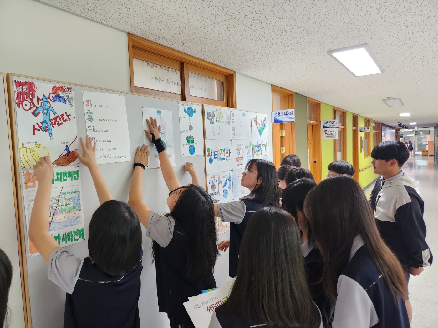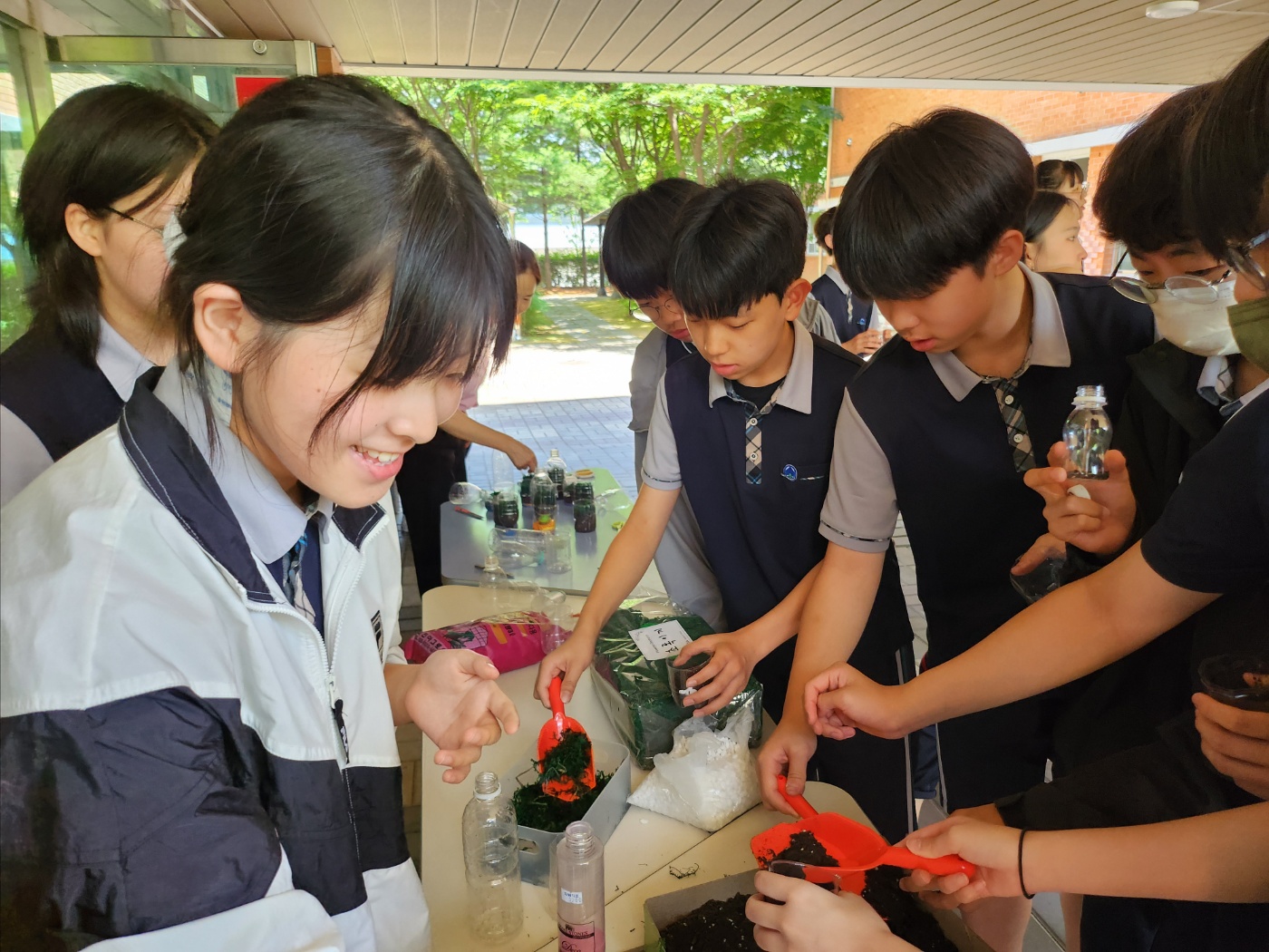 플라스틱병 분리수거하여 모으기, 플라스틱병 재활용 이끼 공기정화 화분 만들기, 환경 퀴즈, 환경 한마디 쓰기 등 다양한 활동에 많은 학생들이 참여하여 기후위기에 앞장서는 모습을 보여주었습니다. ^^